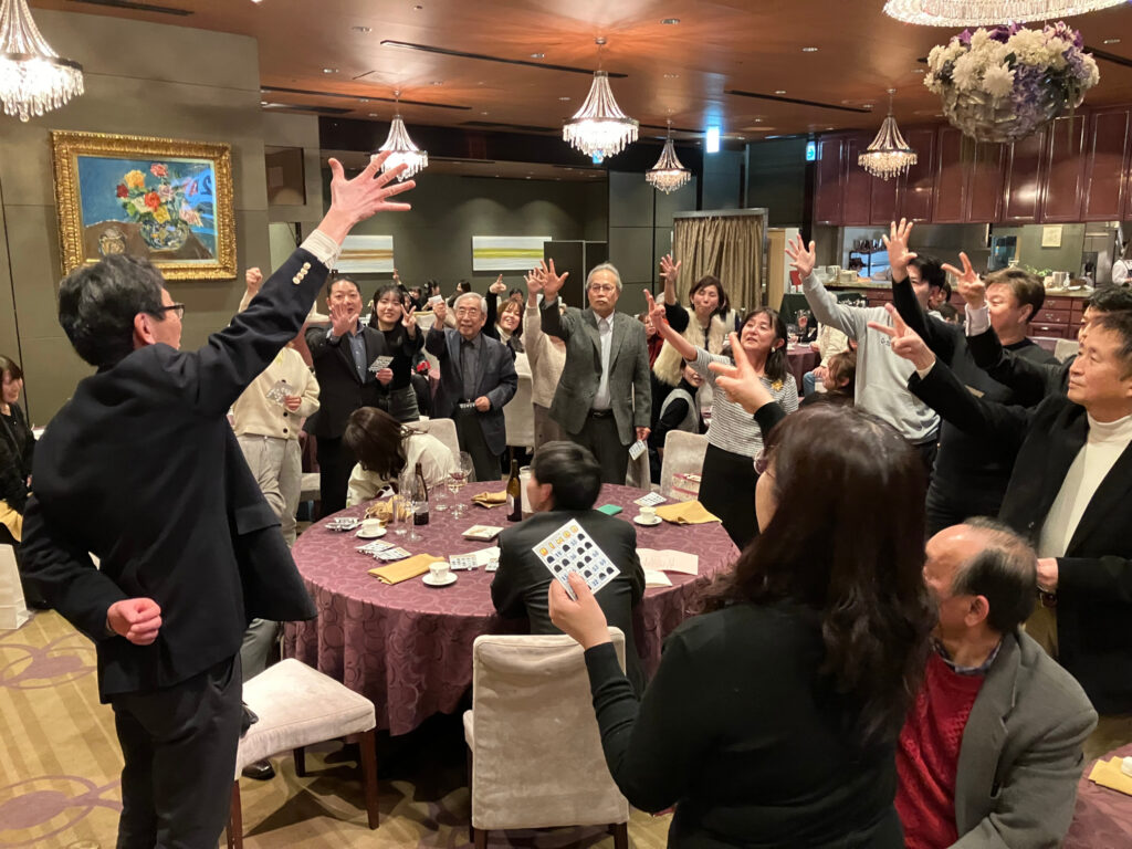 今年は75名のワイン好きの方が参加されました。美味しい西洋料理とワインを楽しみ、最後にビンゴ大会を行いました。